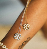 Das “Lucky Me” Kleeblatt ist ihre persönliche, energiegeladene Glücks-Halskette. Sie besteht aus vier zusammengesetzten BraveHearts, die in ihrer Einzelsymbolik für Mut stehen und hier vereint auch als Weltensymbol die vier Elemente, Feuer, Wasser, Luft und Erde repräsentieren.